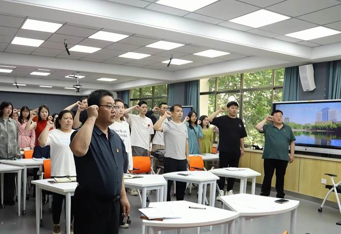 大会在庄严的国歌声中正式启动,歌毕,全体党员在李冬生的带领下重温入党誓词,党员们面向党旗,表达了对党最坚定的信念和忠诚,铮铮誓言也激励着每一位毕业生党员在未来的工作岗位上勇担责任,实干报国。