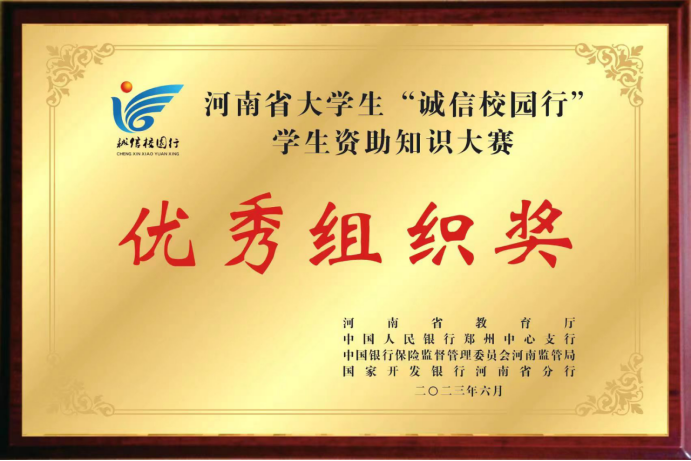 近年来,我校高度重视学生资助工作,积极参加河南省大学生“诚信校园行”系列活动,并取得优异的成绩。学校将以此为契机,进一步推动资助工作的开展,持续扩大资助政策宣传力度,加强征信、金融基础知识普及力度,努力提升资助育人功效,推动我校学生资助工作持续健康发展。(编审/牛丛丛审核/胡玲)
