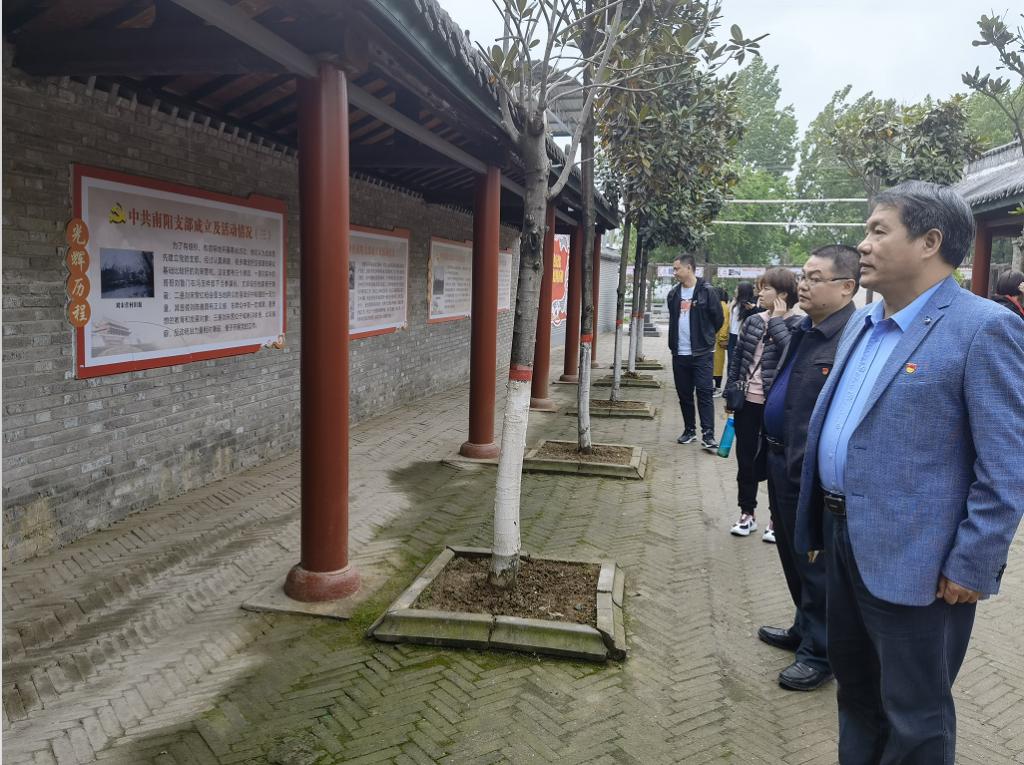 4月21日,范蠡商学院党委书记张良、副书记李冬生及行政教工党支部党员教师赴南阳市宛城区黄台岗镇刘宋营村中共南阳第一党支部旧址开展主题党日活动。