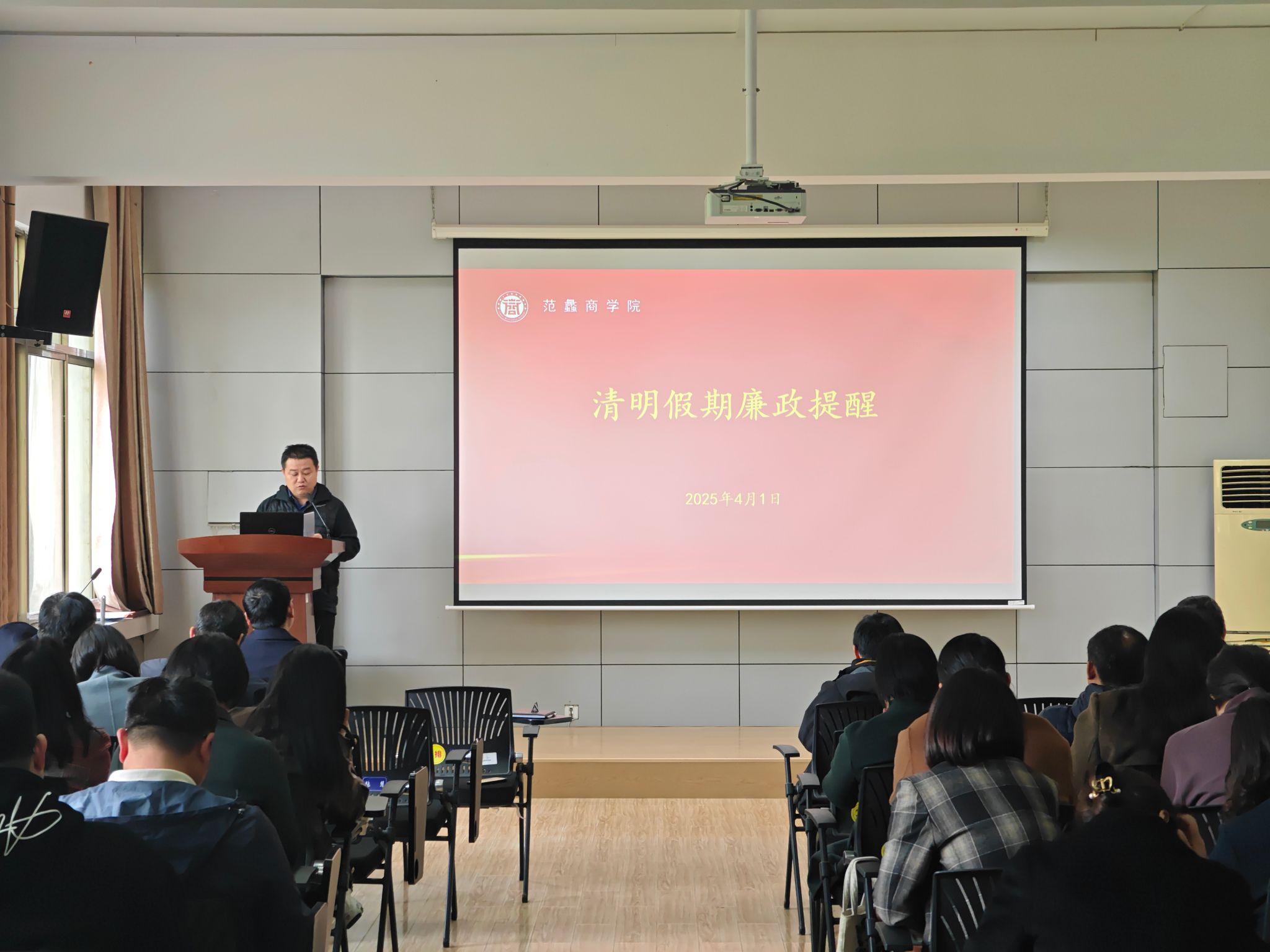 本网讯(特约记者/王健平)4月1日,范蠡商学院召开清明假期廉政提醒会议,进一步严明纪律要求,筑牢廉洁防线,确保广大教师廉洁文明过节。学院全体教师参加会议,会议由学院党委副书记李冬生主持。