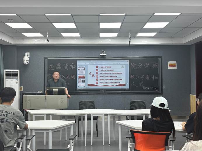 开班仪式上,赵明铎老师对学员提出明确要求,强调入党积极分子应严于律己、以身作则,在日常学习和生活中发挥先锋模范作用。随后,闫合占以“中央八项规定精神的时代意义与实践要求”为主题展开专题党课,结合典型案例深入剖析违反规定的具体表现及危害,并系统阐释了八项规定出台的背景、核心内容及对党风建设的深远影响。闫合占指出,学员需将纪律意识内化于心、外化于行,为营造清正廉洁的校园氛围贡献力量。