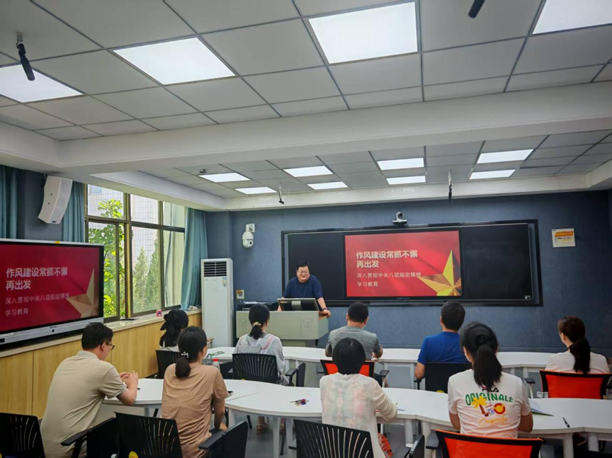 闫合占还列举了教育领域内一些违反八项规定的典型案例,通过这些反面教材,警示全体教师党员要时刻保持警醒,自觉遵守规定,将八项规定的要求内化于心、外化于行。他鼓励教师党员积极发挥先锋模范作用,在日常教学科研工作中,以身作则,带动身边同事共同营造良好的教学科研氛围。