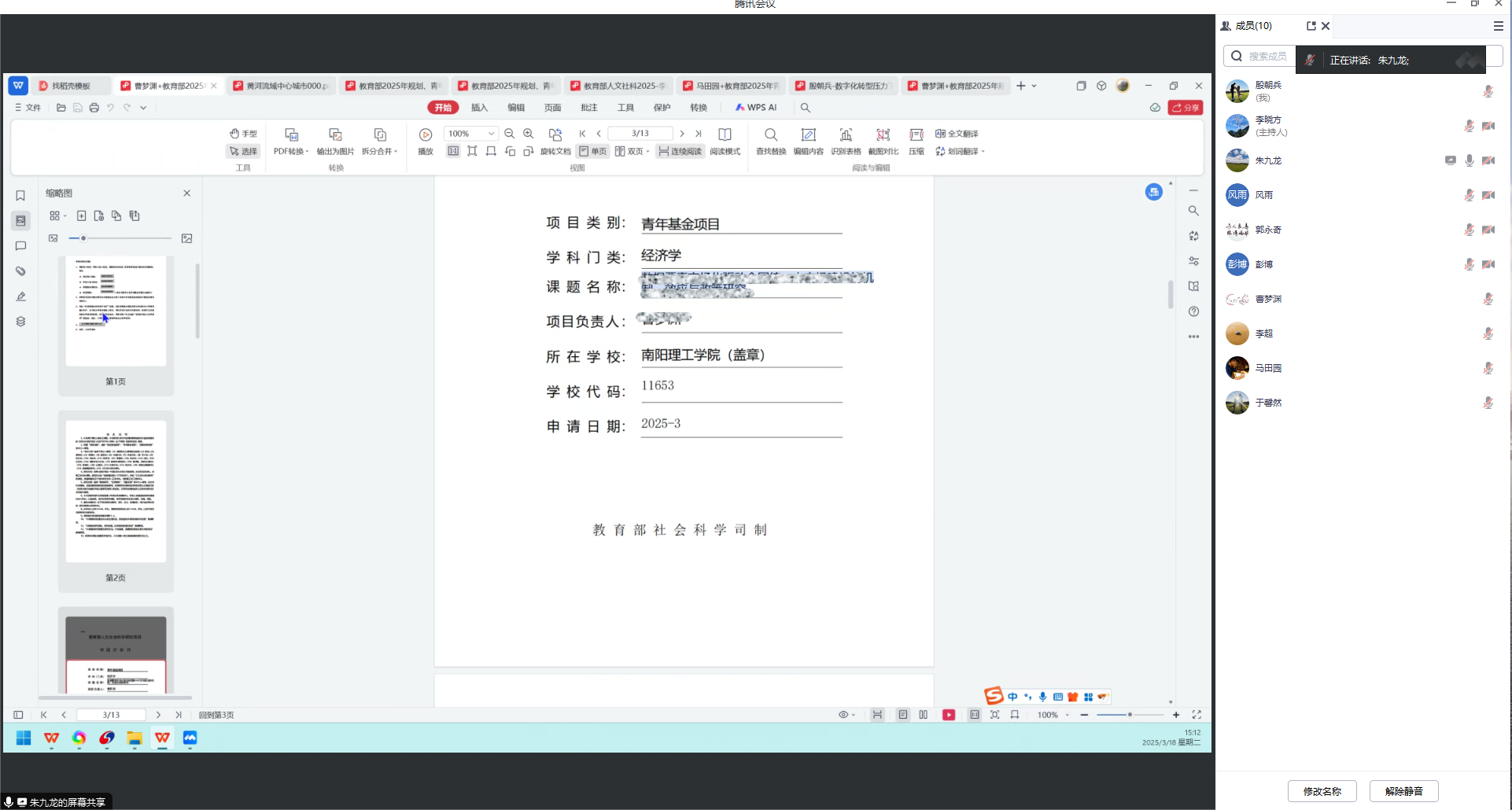 本网讯(特约记者/殷朝兵)3月18日下午,学院举办教育部人文社科基金项目线上论证会,旨在为学院教师的科研工作提供高层次的指导支持,推动国家及教育部基金项目申报取得新突破。会议由李晓方副院长主持,院长郭永奇、朱九龙教授、学院拟申报教育部人文社科基金项目教师参会。