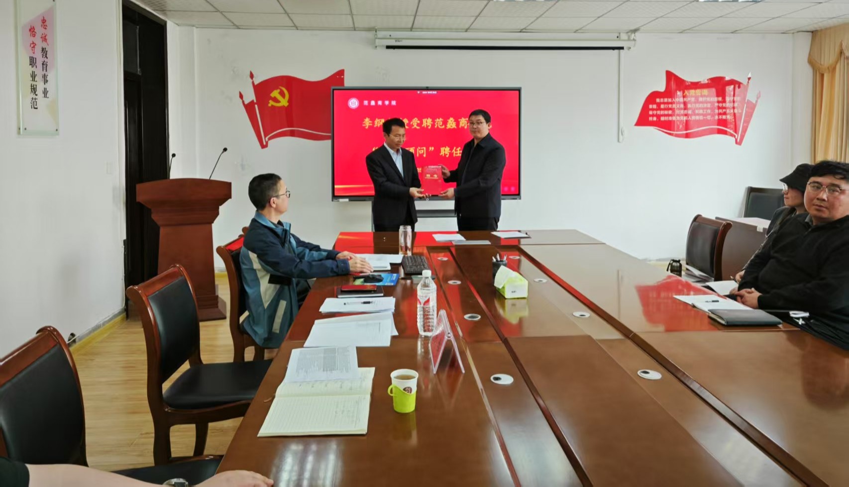 郭永奇院长颁发“范蠡商学院发展顾问”聘书。