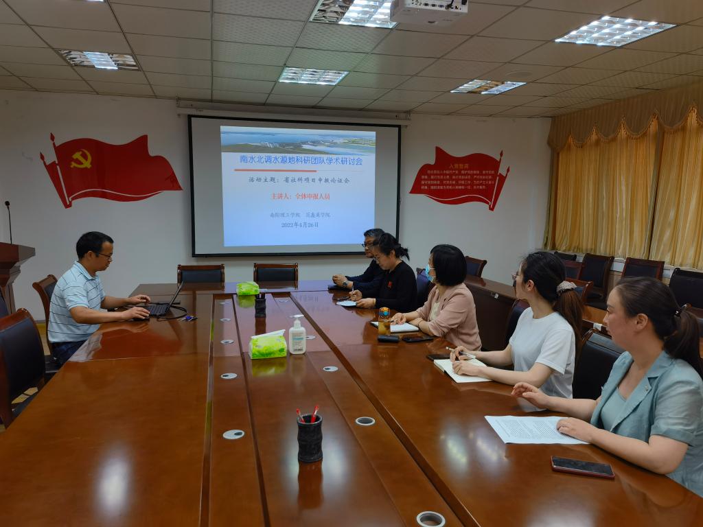 南水北调科研团队4月26日18:00在1331会议室举行了科研团队学术活动。南水北调科研团队由朱九龙主持,针对《2022河南省社会科学规划项目申报》的主题进行了深入研讨。