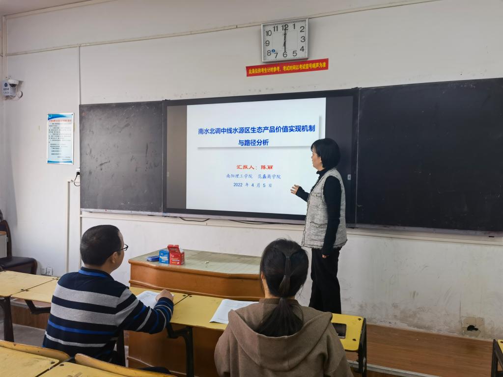 南水北调科研团队4月5日18:00在1529多媒体教室举行了科研团队学术活动。陈丽做了主题为《南水北调中线工程水源区面源污染特征分析》的学术报告。