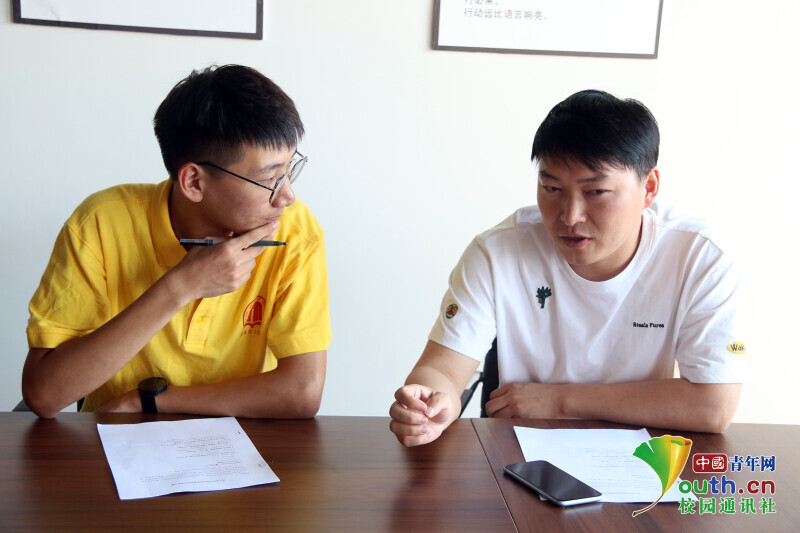 图为队员与企业负责人面对面交谈。中国青年网通讯员 杨志豪 摄