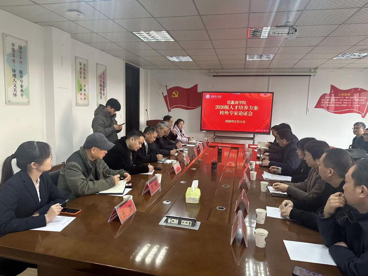 2月11日,范蠡商学院在1331会议室召开校外专家聘任仪式暨2026版人才培养方案校外专家论证会。南阳市科协、审计局、牧原集团、聚爱优选等合作单位及用人单位、优秀校友代表共15人应邀参会。范蠡商学院院长郭永奇,副院长党政军、周青浮及相关专业负责人出席会议。