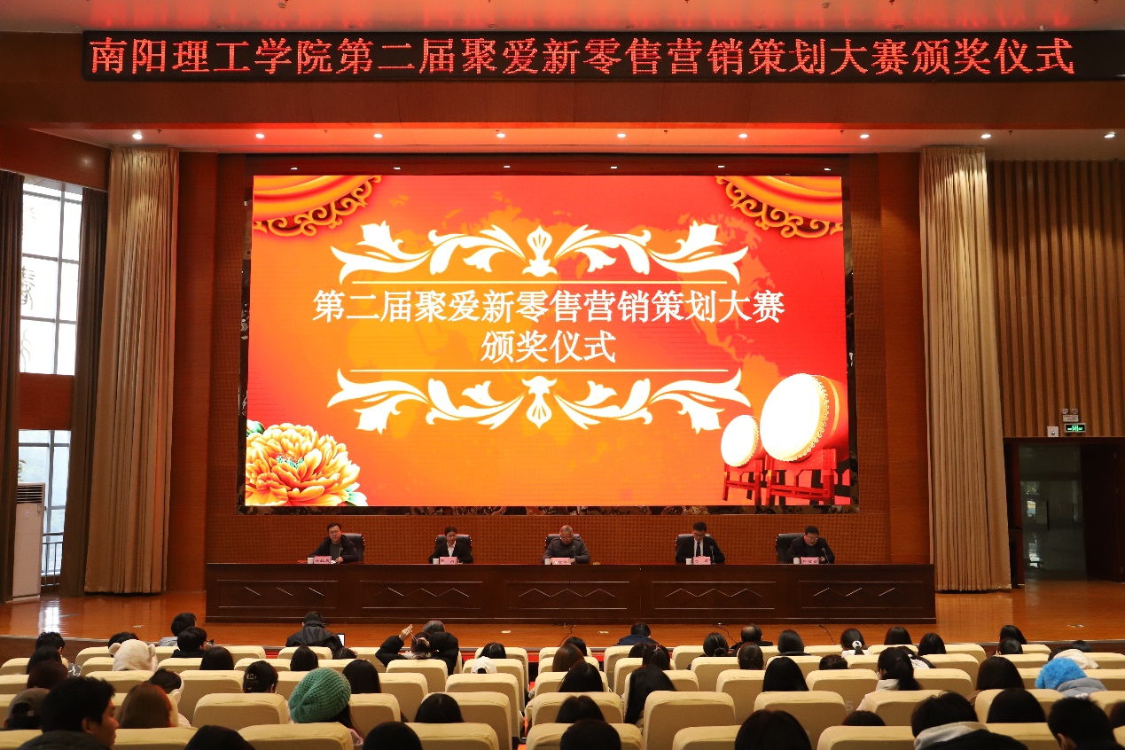 本网讯(通讯员/李伟) 12月19日,范蠡商学院在第三报告厅举办南阳理工学院第二届聚爱新零售营销策划大赛颁奖仪式。副校长张世海、河南省聚爱数字科技有限公司相关负责人、范蠡商学院领导班子及新零售产业学院全体教师出席颁奖典礼,范蠡商学院党委书记闫合占主持颁奖仪式。