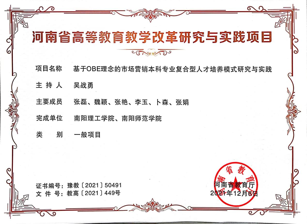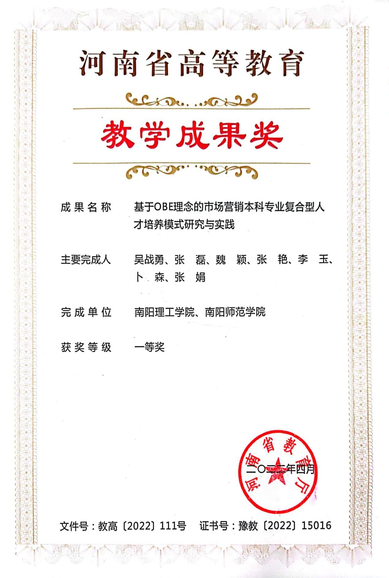10 | 教改成果 | 基于OBE理念的市场营销本科专业复合型人才培养模式研究与实践 | 省级 一等奖 | 2022.1 | 吴战勇 |