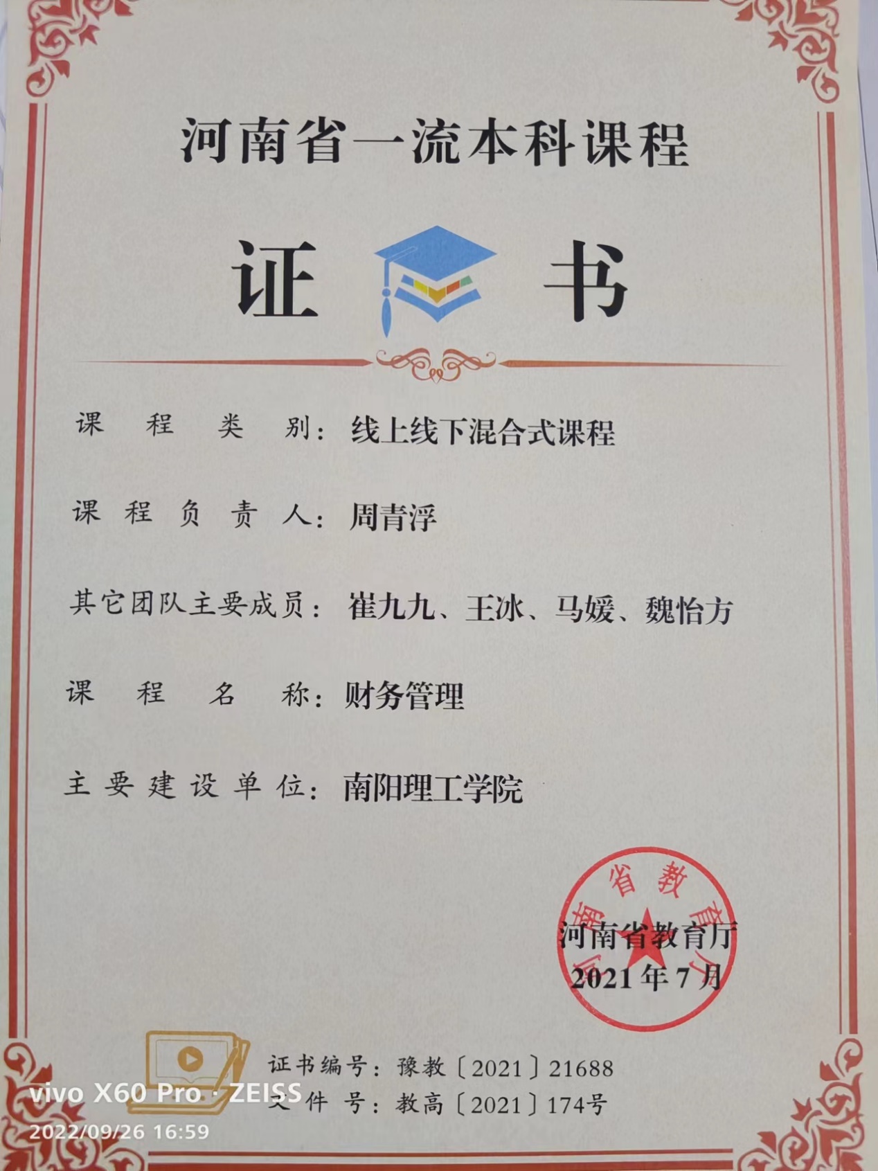 7 | 一流课程 | 财务管理 | 省级 | 2021.7 | 周青浮 |
