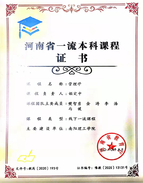 5 | 一流课程 | 管理学 | 省级 | 2020.5 | 姬定中 |