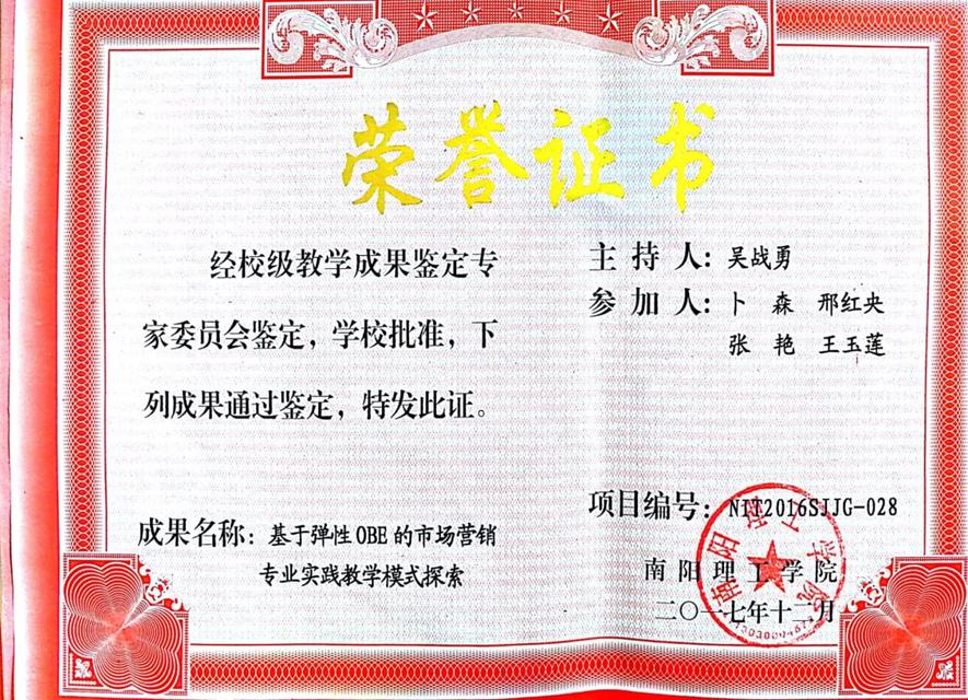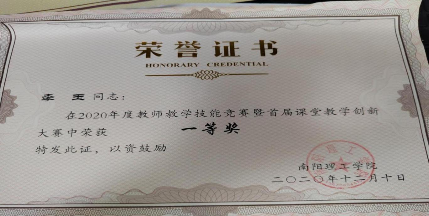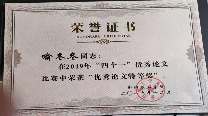 2019.12喻冬冬南阳理工学院“四个一”优秀教改论文 特等奖