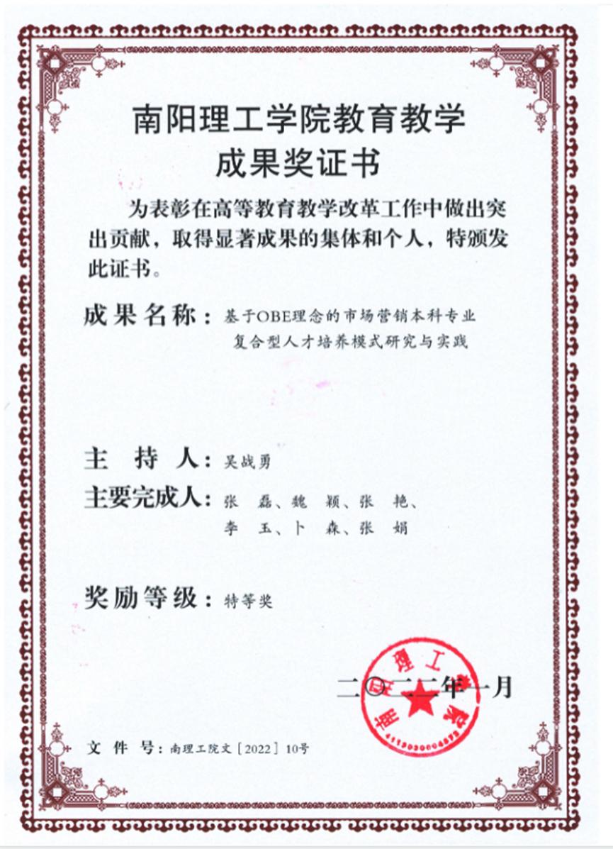 《基于OBE理念的市场营销本科专业复合型人才培养模式研究与实践》