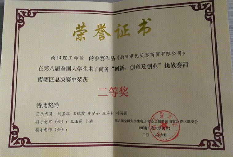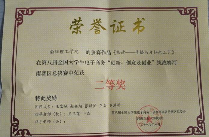 2018.6全国大学生电子商务创新、创意、创业大赛二等奖
