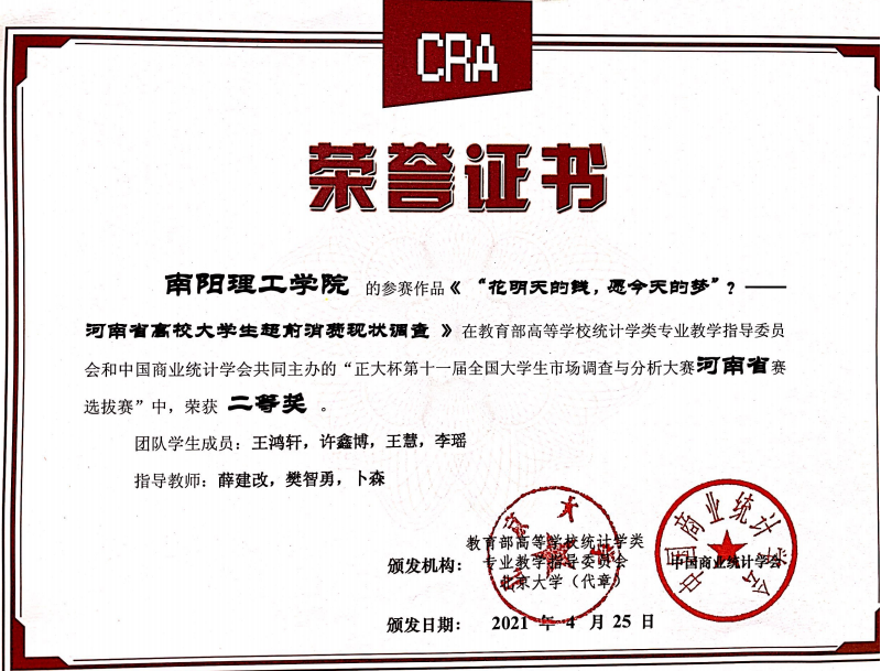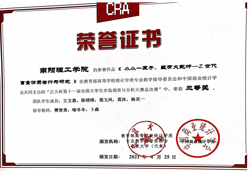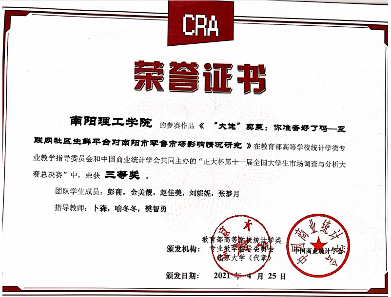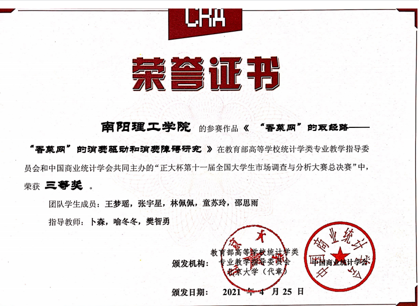 2021.4第十一届全国大学生市场调查与分析大赛三等奖