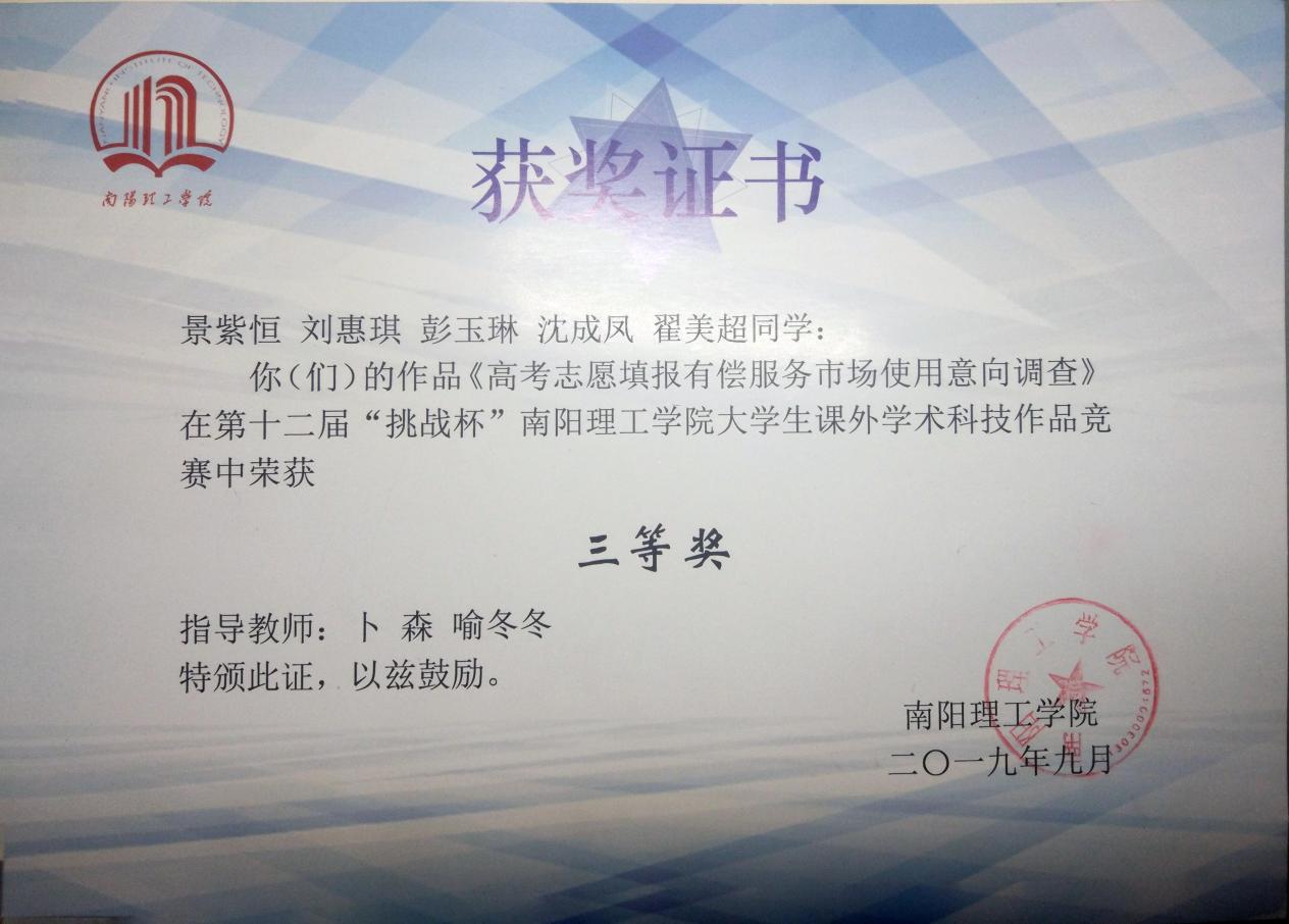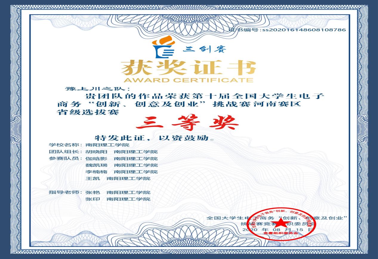 河南省赛 三等奖 |