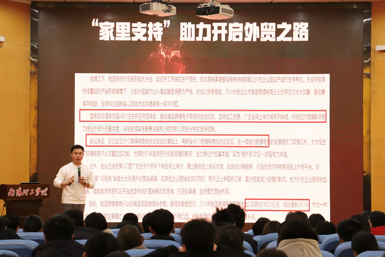开封市奥乐贸易有限公司总经理李佳乐通过自己的创业经历,从跨境电商选品、售前、售中、售后服务、公司建设等进行了深入的讲解和分享,并与多位观众互动,最后与在座同学和企业进行了交流并留下了联系方式。