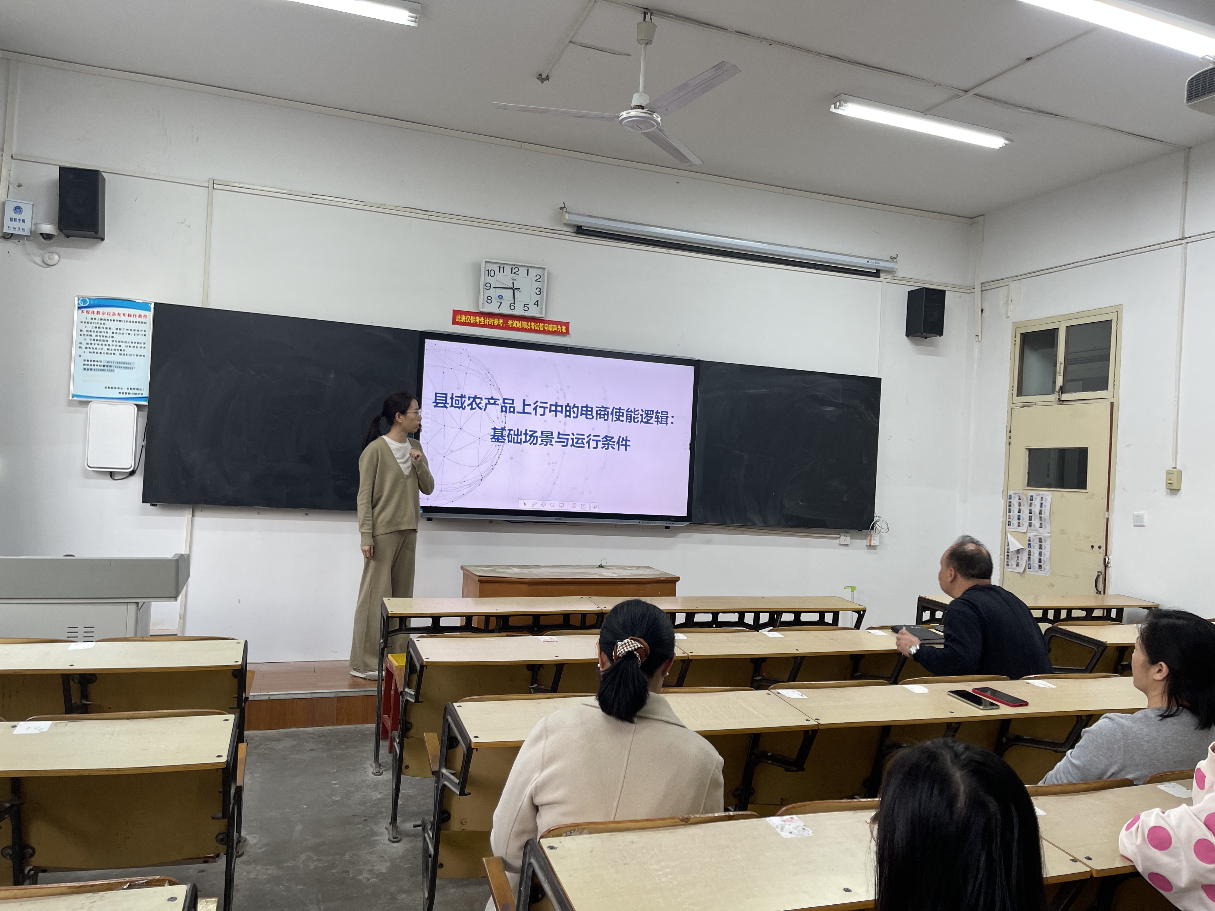 县域电商科研团队4月11日17:30在1225多媒体教室举行了科研团队学术活动,王延资做了主题为《县域农产品上行中的电商使能逻辑:基础场景与运行条件》的学术报告,团队成员进行了深入的交流。