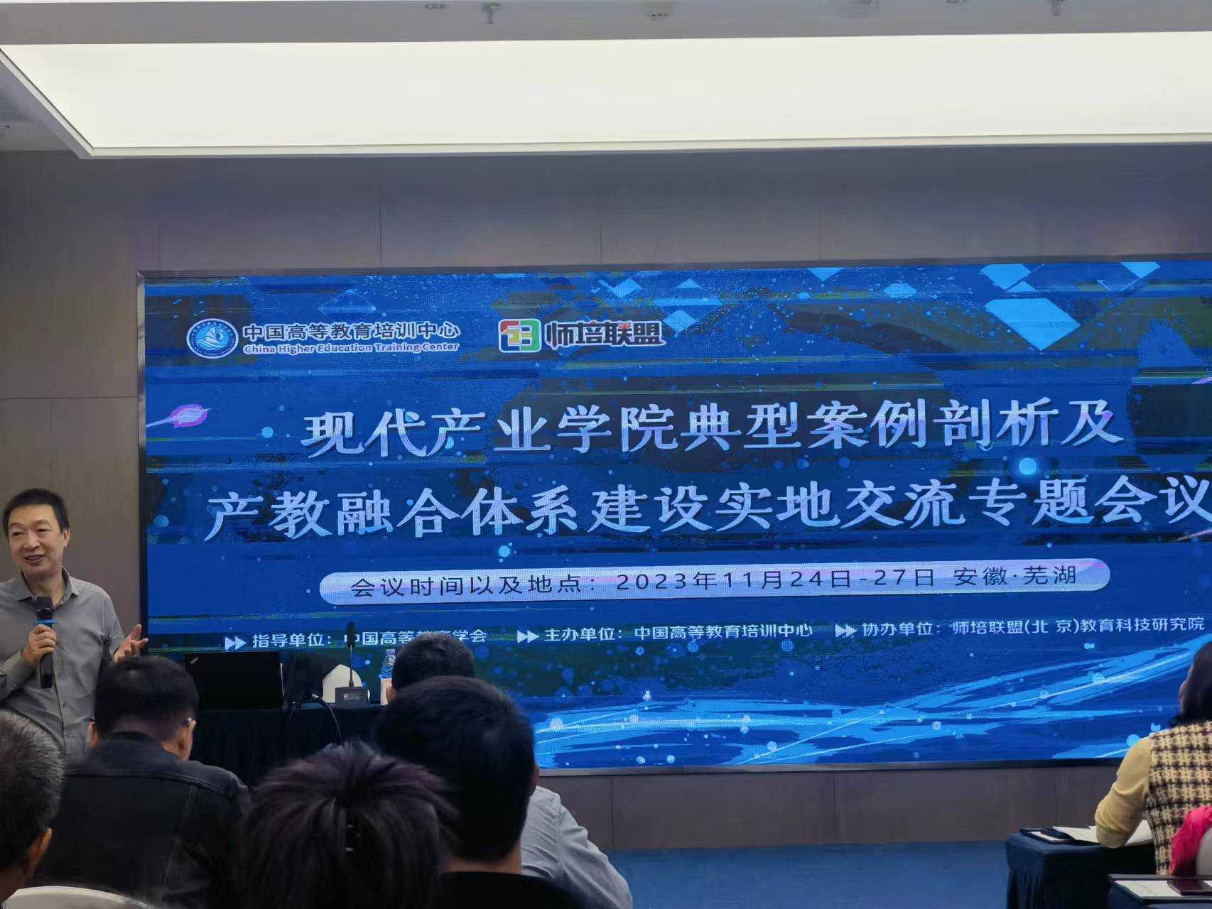 会议交流环节,东莞理工学院电子工程学院院长做了主题为《集聚产业 服务产业 培养人才》的报告,侧重微观操作技巧,介绍了产业学院建设的出发点、思路、措施和成效等部分。合肥工业大学校长做了主题为《深化产教融合、培养高素质人才》的报告,内容涵盖了产业学院的政策导引和时代背景,重点介绍了该校在建设智能制造现代产业学院乃至专业建设尝试和经验。南京师范大学南瑞电气与自动化学院院长做了主题为《建设现代产业学院推进产教融合》的报告,紧紧围绕产业学院的目标定位、建设基础、保障体系和育人模式等方面做了经验交流。安徽工程大学机器人现代产业学院院长报告中系统介绍了该院的人才培养体系建设和校地协同育人等方面的举措和成效。在交流环节,范蠡商学院学习组重点围绕如何激发企业参与建设的积极性,如何构建协同育人体系等方面进行了详细交流。