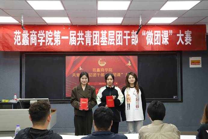 本网讯(通讯员/赵小淇)为进一步夯实学校共青团基层基础,为广大团干部、青年学生搭建展示自我、提升能力、交流思想的平台,4月10日晚,范蠡商学院在1教315教室举行第一届共青团基层团干部“微团课”大赛。21、22级学生代表参加此次比赛。