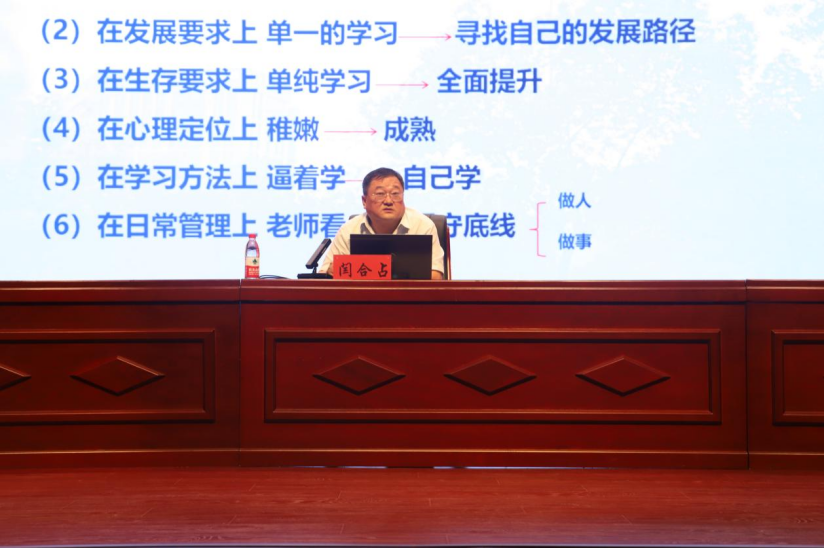 闫合占表示,希望同学们能尽快转换角色,熟悉了解自己所学专业,以饱满的热情和昂扬的斗志投入到大学生活中去。同时,从学生工作、日常管理、职业规划等方面进行详细讲解,希望同学们做到纪律底线绝不触碰、学习要求毫不放松、综合素质全面发展、职业生涯尽早规划,努力培养自身,为成为优秀的青年一代接班人而奋斗!