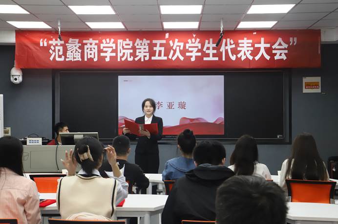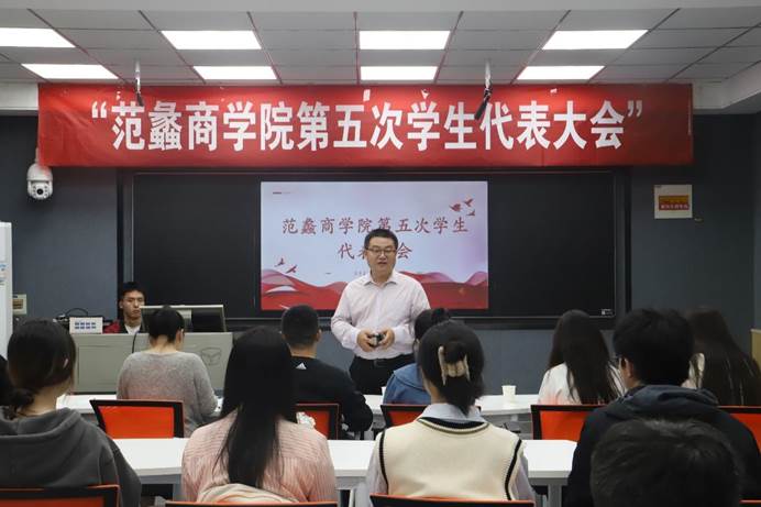 本网讯(通讯员/刘佳宁)青春筑梦正当时,理想领航新征程。9月26日晚,范蠡商学院在1315教室召开第五次学生代表大会。范蠡商学院党委副书记李冬生、团委书记董博、团委副书记张雨爽、全体辅导员老师以及学生代表参加此次大会。