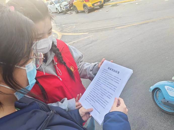本次志愿服务活动分为国家资助政策宣讲和美化社区形象两部分。首先,同学们对社区内的自行车进行规整摆放,帮助社区工作人员清扫街道,随后,同学们组成宣讲小队,对社区内的群众进行国家资助政策的宣讲和诚信知识的普及。