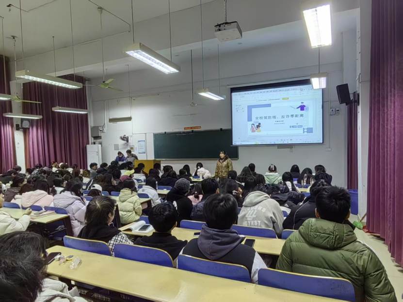 本网讯(通讯员/张慧茹)为增强学生防范电信网络诈骗的意识和能力,营造安全和谐的校园环境,2月24日-2月28日,范蠡商学院组织开展“全校筑防线 反诈零距离”主题班会活动。22、23、24级同学分批次参加,各班级辅导员、学业导师进班讲解。