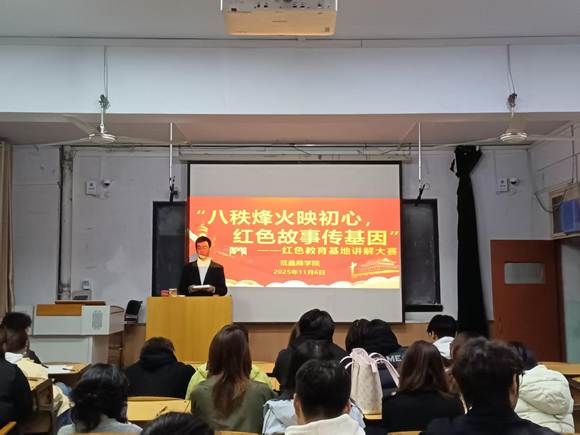 本网讯(通讯员/蒋诗雨)11月6日晚,范蠡商学院在西北校区一教515教室举办“八秩烽火映初心·红色故事传基因”红色教育基地讲解大赛,24级、25级学生参加此次活动。