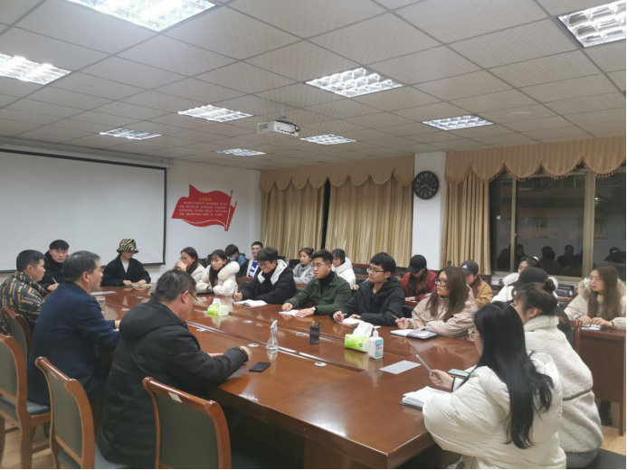 会议开始,首先每位学生干部对半年来的工作做了简单汇报。张良书记对学生干部的工作表示支持与肯定,他提出学生干部应加练打磨好实力,做到能说能做能写。要积极主动的学习贯彻十九届五中全会精神。同时针对即将到来的期末考试做出考风考纪要求,严禁考场舞弊,一经发现将严肃处理。最后张良书记提出对学生干部工作的四点意见:一、加强自身修养,团结同学,提高自身学习成绩,做学习的表率;二、实现学生会建设目标:自助、创新、服务、担当;三、发动群众,指导班团间的工作;四、加强班团建设,让班干部担当作为。