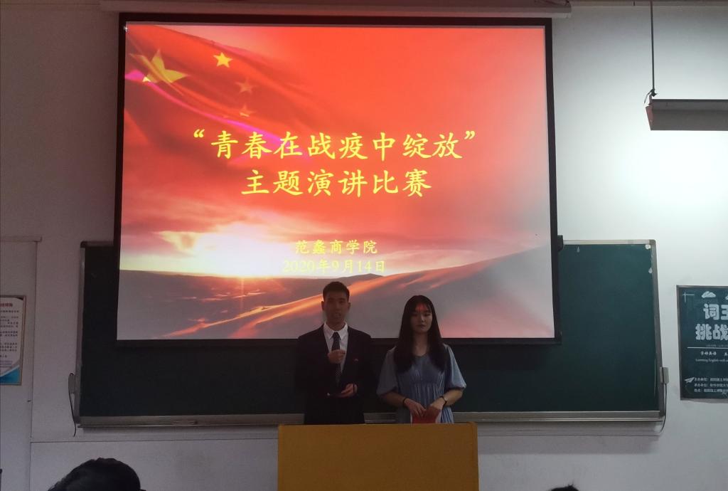 本网讯(通讯员/张银屏)为弘扬伟大抗疫精神,展现青春激昂风采。9月14日晚,范蠡商学院在14号教学楼202教室举办“青春在战疫中绽放”主题演讲比赛。团学办主任董博、17级辅导员张雨爽、19级辅导员张煜梵出席本次比赛,学生会主席团担任评委,近百名学生观看比赛。