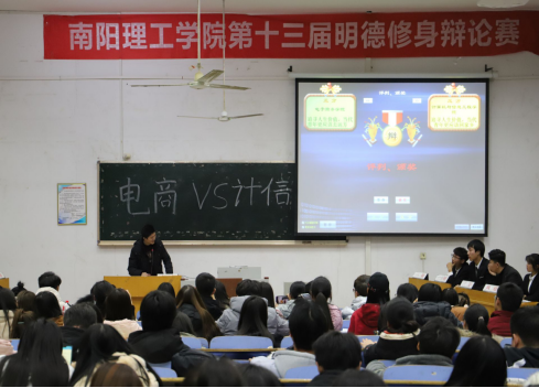 本网讯(通讯员/李贺元)12月19日,我校明德修身主题辩论赛决赛在六号教学楼102教室举办,电子商务学院辩论队对战计算机信息与工程学院辩论队。近百名学生赴现场观看比赛。