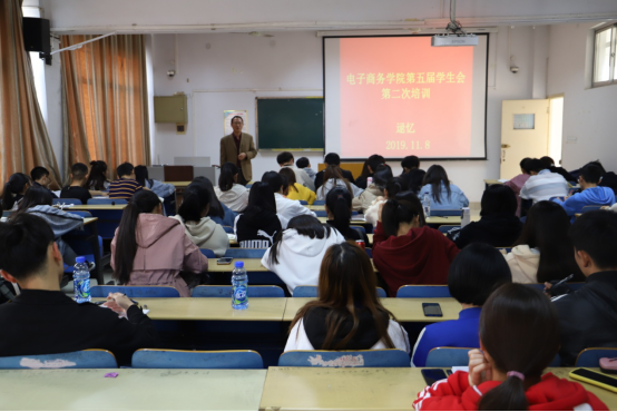 11月8日,电子商务学院在9号教学楼411教室组织召开第五届学生会第二次培训会,党总支书记逯忆主讲,学生会全体成员参加。