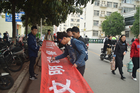 创建文明餐厅签名活动的举办,有利于学生养成勤俭节约的习惯,也有利于彰显当代大学生的文明形象,创建文明餐厅。(摄影/彭金凤编审/张凯威审核/张雨爽)