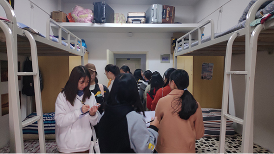 本网讯(通讯员/左伟)11月16日,电子商务学院举办男女生宿舍互查评选活动。本次活动由学生会生活部主办,以男女生互查宿舍方式进行,主要针对宿舍卫生和环境进行检查评选。生活部干事及各班代表参加。