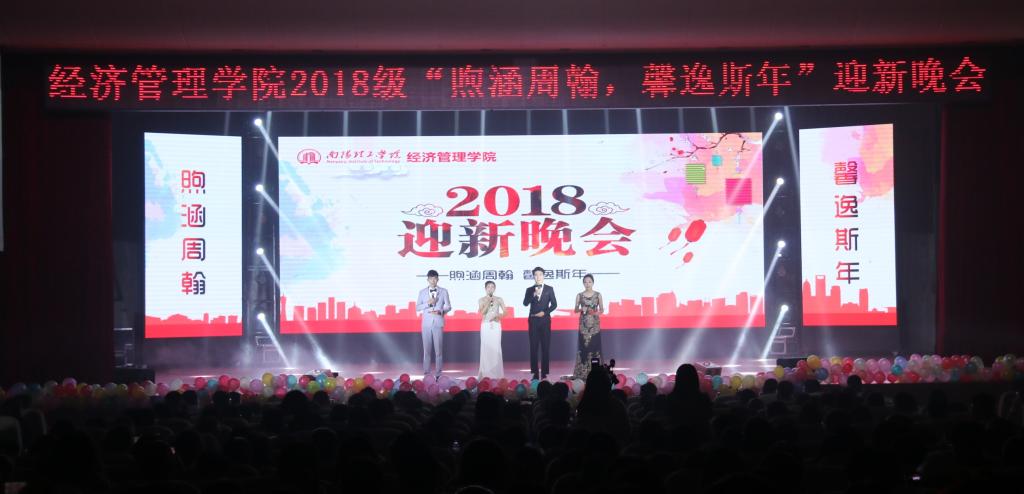 本网讯(学生记者/杨立露)11月9日,经济管理学院2018级"煦涵周翰,馨逸斯年"迎新晚会在毕业大厅浓情上演。近八百名师生观看此次晚会。