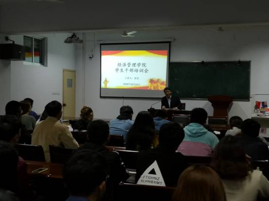 (本网讯 特约记者 田进军 )10月15日晚,经济管理学院“新一届学生会干部培训会”在9224举行,经济管理学院全体辅导员、新一届学生会干部参加,党委书记张良做培训第一讲。