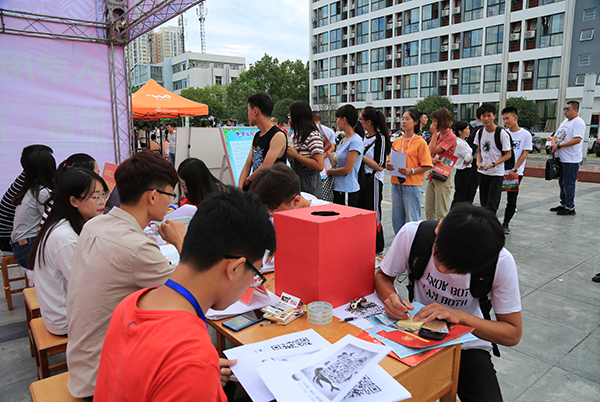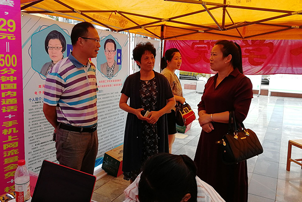 下午,电商学院院长王一平,党总支书记逯忆来到迎新帐篷,慰问值班人员,了解新生报到情况,并与新生及其家长进行近距离的交流,了解情况,帮助新生完成登记注册并介绍学院概况。