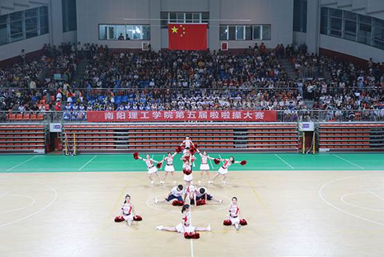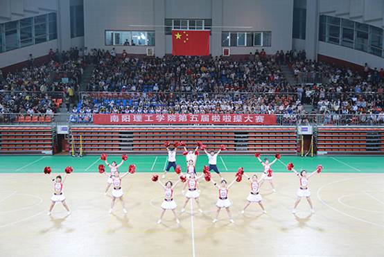 本网讯(通讯员/刘紫君)在我校第二十五届运动会即将到来之际,4月10日,由校体育教学部主办的南阳理工学院第四届啦啦操比赛在体育馆二楼举行。电商学院学生自发到体育馆为学院的13名啦啦操队队员加油助威。