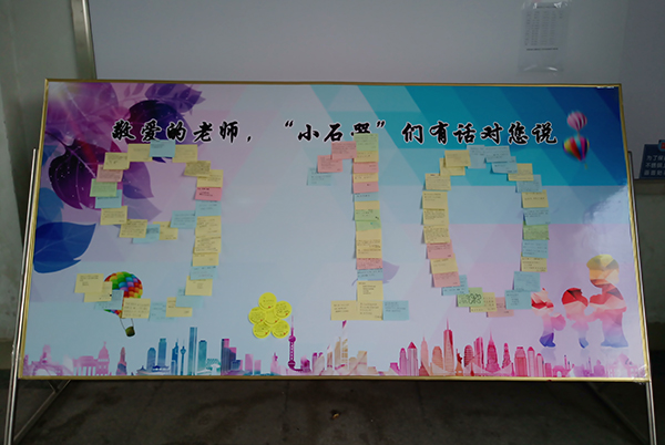 参与学生将对老师的祝福写在便利贴上,由组织人员粘贴在展板上组成“9.10”图案。轻盈数行字,浓浓感恩情。一句一字不仅是学生对老师的敬仰与尊重,更表达了对老师无私奉献的感恩之情。活动的举办不仅有利于促进电商学院温馨和谐氛围的形成,更有利于增进师生间的友谊。