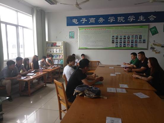 本网讯(通讯员/叶磊沈成凤)6月14日中午,电子商务学院在9号教学楼406教室召开班长大会。电商学院团学办主任白林驰,14级辅导员赵杰,15级辅导员张卓娅出席会议,各班班长参加会议。会议由白林驰主持。