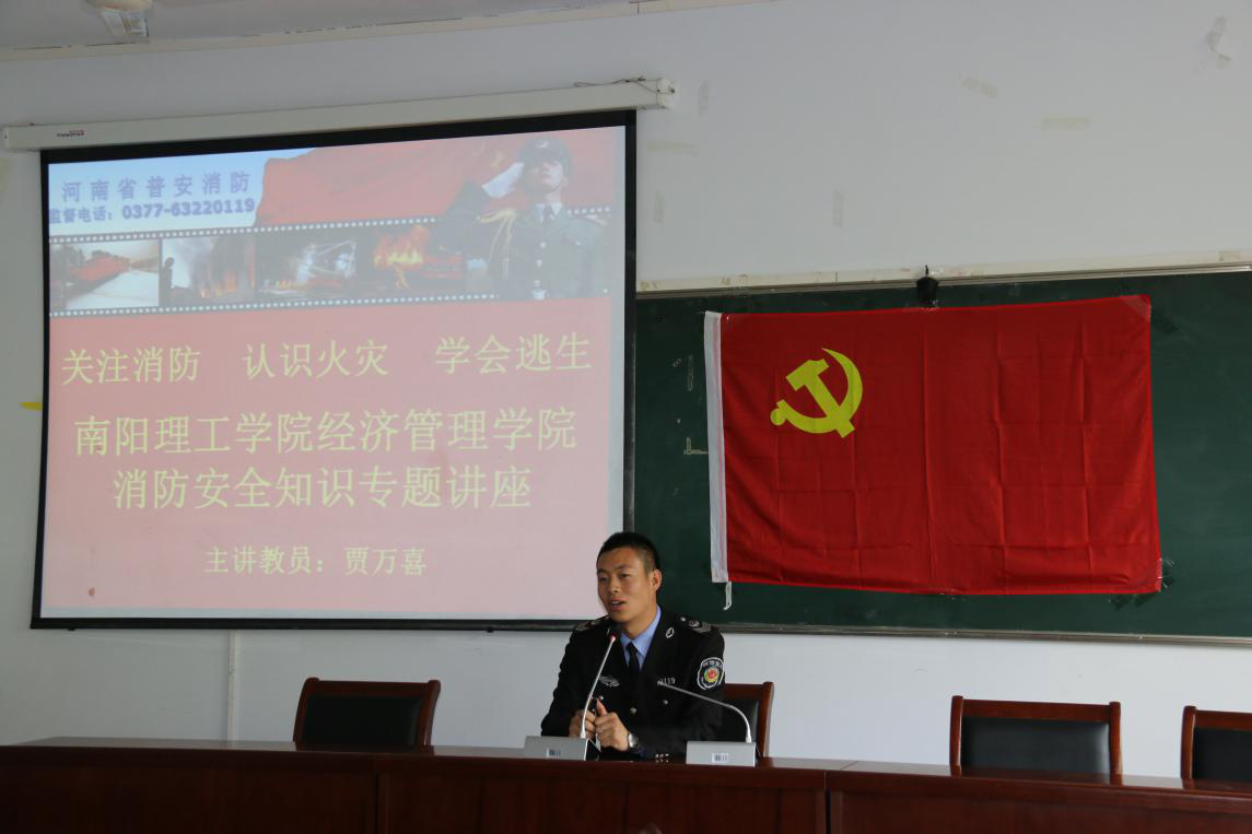 本网讯(通讯员/洪硕)5月2日下午,经济管理学院在9号楼224举行消防安全知识专题讲座。主讲教员贾万喜以关注消防、认识火灾、学会逃生为主题展开深入全面的讲解。经管学院八十余名师生聆听讲座。