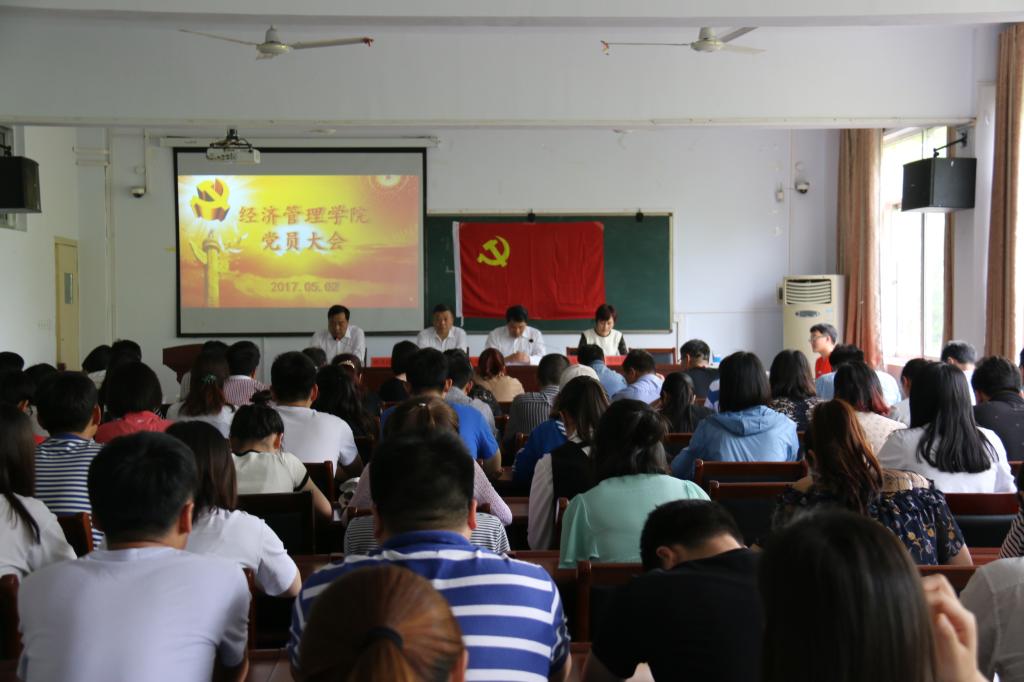 本网讯(学生记者/马博)5月2日,经济管理学院在9224会议室召开党员大会,选举中国共产党南阳理工学院第三次代表大会代表。经管学院党委书记张良,院长姜保雨,党委副书记林茂超,副院长李晓霞及八十余名师生党员参加会议。经济管理学院党委书记张良主持会议,