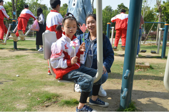 首先,志愿者们送给孩子们亲手用彩纸折叠的百合花。之后,各位志愿者陪着孩子们在公园游玩,他们每个人的脸上都充满着开心又激动的笑容。