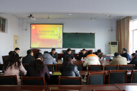 本网讯(特约记者 田进军)2017年1月21日,经济管理学院第四次学生工作会议在9#224召开,副校长肖泽昌、学生处处长路瑞锋、校团委科技创新部部长程斐及经济管理学院全体领导班子、专兼职辅导员和部分学业导师代表参加了会议。会议由经济管理学院党委书记张良主持。