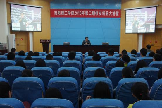 本网讯(通讯员/姜盼云 黄鑫)4月28日,由招生就业处主办,经济管理学院承办的南阳理工学院第二期校友创业大讲堂在西北校区图书馆二楼报告厅举行。此次以“大学生创业能力自我评估与提升”为主题,优秀企业家王晗受邀成为本次主讲人。百余名有创业意愿的大学生到场聆听。