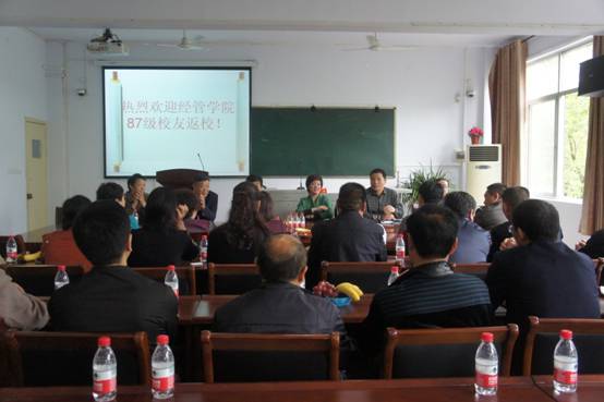 在短暂的参观校园后,他们齐聚9教会议室,畅抒师生情、同学谊。首先,肖泽昌在座谈会上代表领导学校对87级校友重返母校表示热烈欢迎,肯定了87级校友在自己的工作岗位上做出的突出业绩,对他们长期以来对学校的发展做出的贡献表示感谢。姜保雨对经管院近年来的发展做了汇报。李慧表示,对87级的学生感情很深,在学校建校30周年校庆将要到来之际见到大家真的非常开心,看到大家的成就作为老师非常骄傲自豪。随后,同学们纷纷表达了对母校深深的眷恋和对老师由衷的感激之情。参观过校园后,他们感受到了学校在占地面积、学生数量、教学资源和硬件设施上质的变化。他们还向老师们汇报了毕业后的工作生活情况,为母校送上真挚的祝福,表达了他们再次相聚校园的愿望。