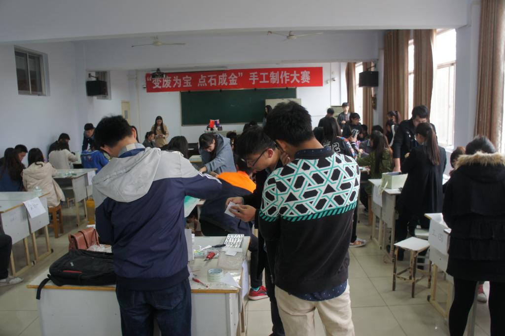 本网讯(通讯员/王一晴 周曦瑞) 一年一度的“学雷锋”系列活动正如火如荼进行。3月25日,经济管理学院积极响应学校“学雷锋”的口号,变废为宝手工制作大赛于9#224如期举行。党委书记张良,团学办主任田进军,副科级辅导员赵明铎与60余名大一学生共同参加。