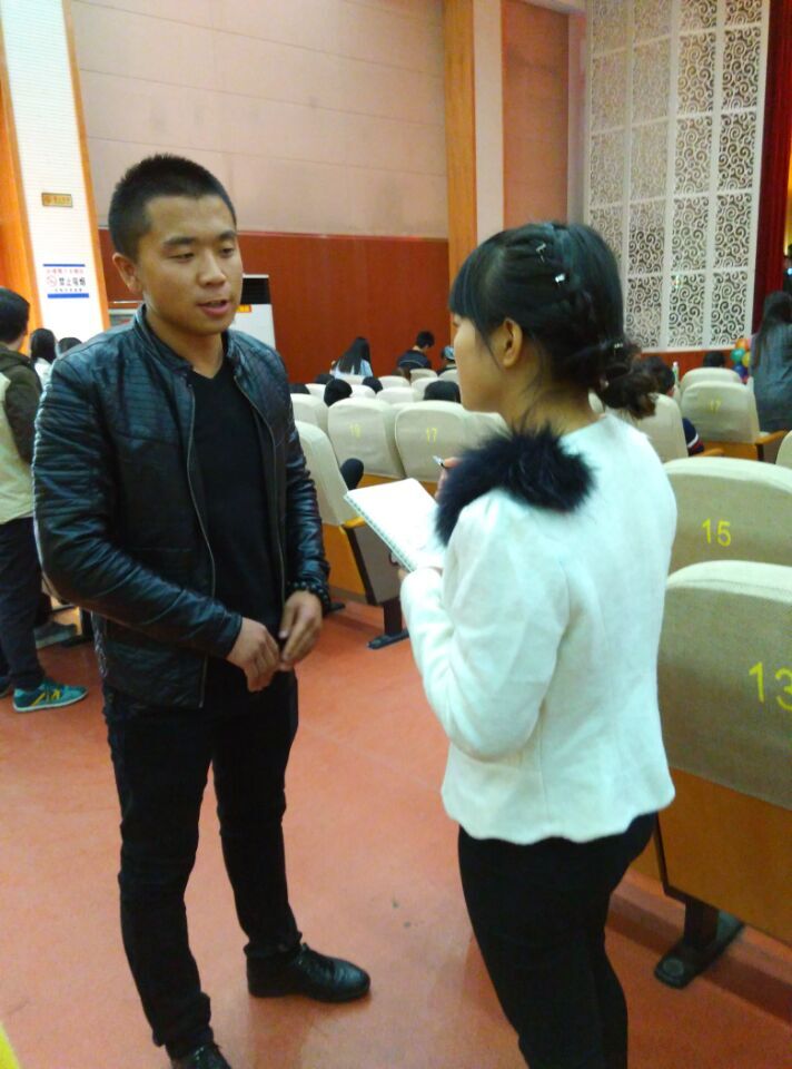 本网讯(通讯员/贾增颖 吴思曼 潘晓敏)2015年11月1日下午,距离经济管理学院与电子商务学院15级迎新晚会还有不到三个小时的时间,彩排工作还在井然有序进行中。由此,我们对学生会主席罗东以及学生会主席助理靳帅做了迎新晚会专题采访。